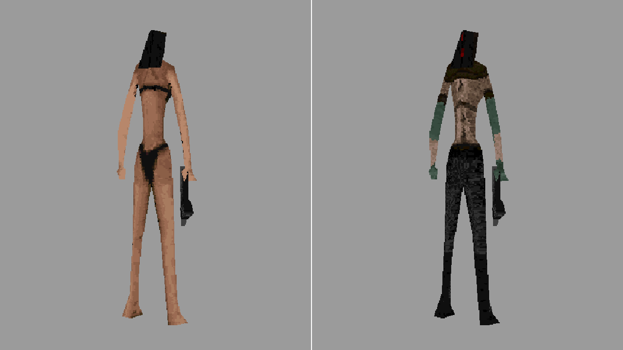 | The enemy, originally called "Bitch", was changed as I felt that its original design was immature and out of place. Whilst the other enemies in the game were either aliens or robots, Bitch was simply a tall woman in a bikini. |